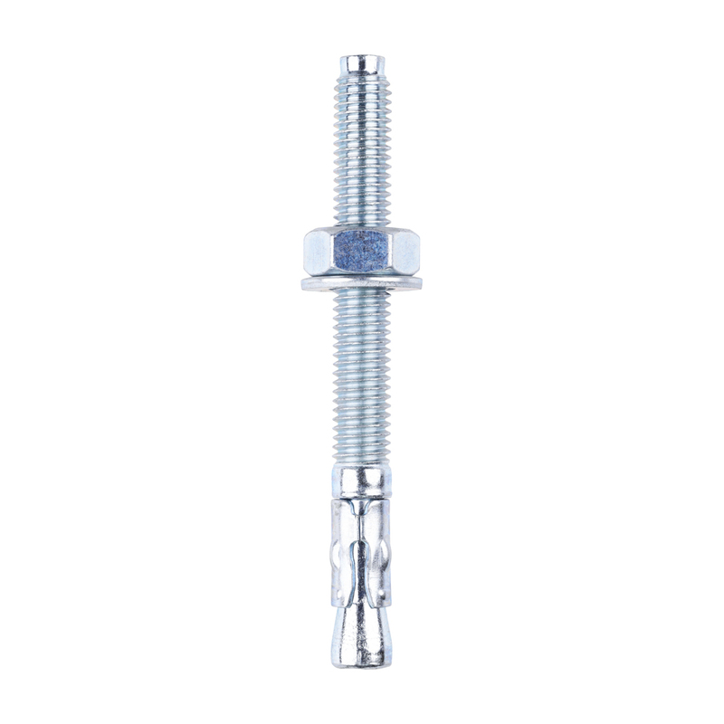 A versatile, torque controlled through fixing for use in a wide range of anchoring applications into concrete. Complete with hex full nut and washer. NOTE: If no torque wrench is available, tighten the nut 3 to 4 full turns from finger tight.