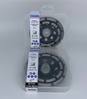 These 115mm 4.1/2" diamond cup grinder specifically for concrete and stone are made to a high standard by Sonnenflex. This ECO double row grinding cup are hard wearing lasting much longer than many other types of stone grining products available. The 22.2mm centre will fit most 115mm (4.1/2") or 125mm (5") angle grinders.